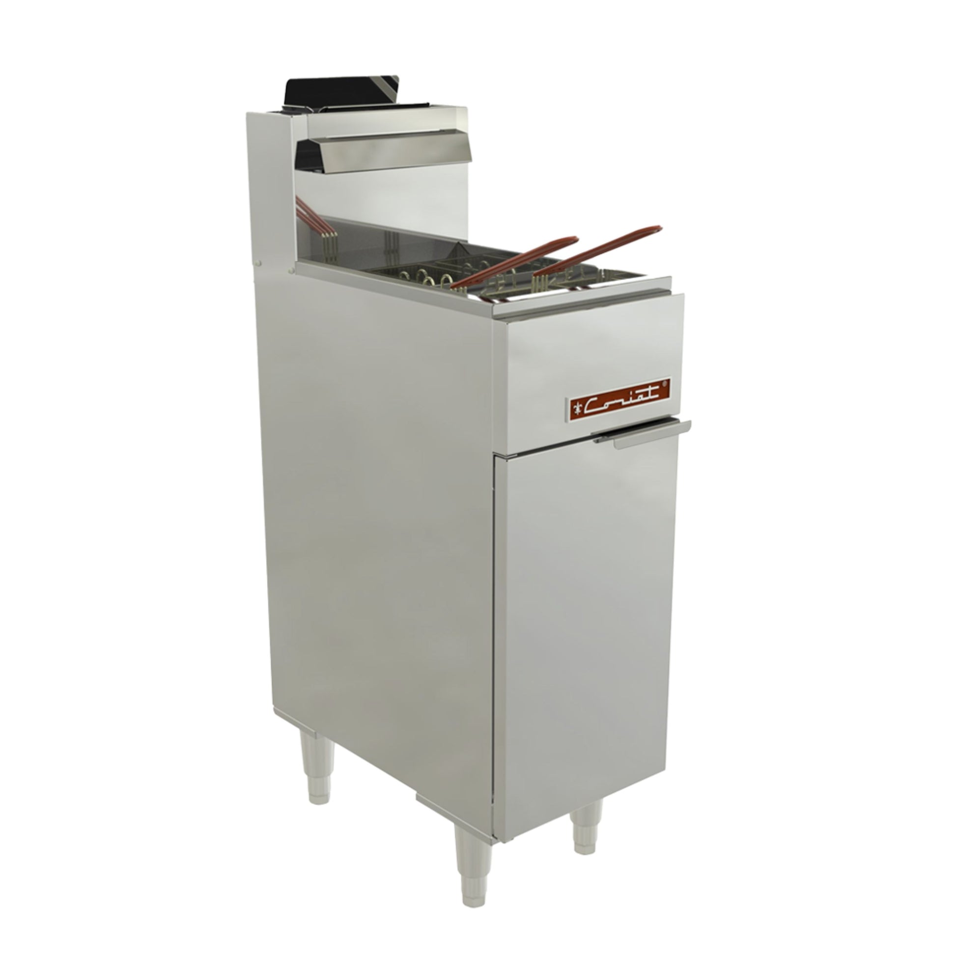 FREIDORA CORIAT FC-10 PETIT, ACERO INOXIDABLE; TINA A.INOX. 304 SANITARIA, CAPACIDAD 3 L; CANASTILLA NIQUELADA CON ASA PLASTIFICADA 0.160X0.250X0.110 M; QUEMADOR TUBULAR A.INOX. 17,600 BTU/H; PILOTO, VÁLVULA DE AJUSTE Y GAS CERTIFICADAS CSA; PERILLA ZINC CON AISLAMIENTO TÉRMICO; MEDIDAS 0.320X0.565X0.310 M; PESO 16 KG; INCLUYE KIT CONVERSIÓN GLP A GN.