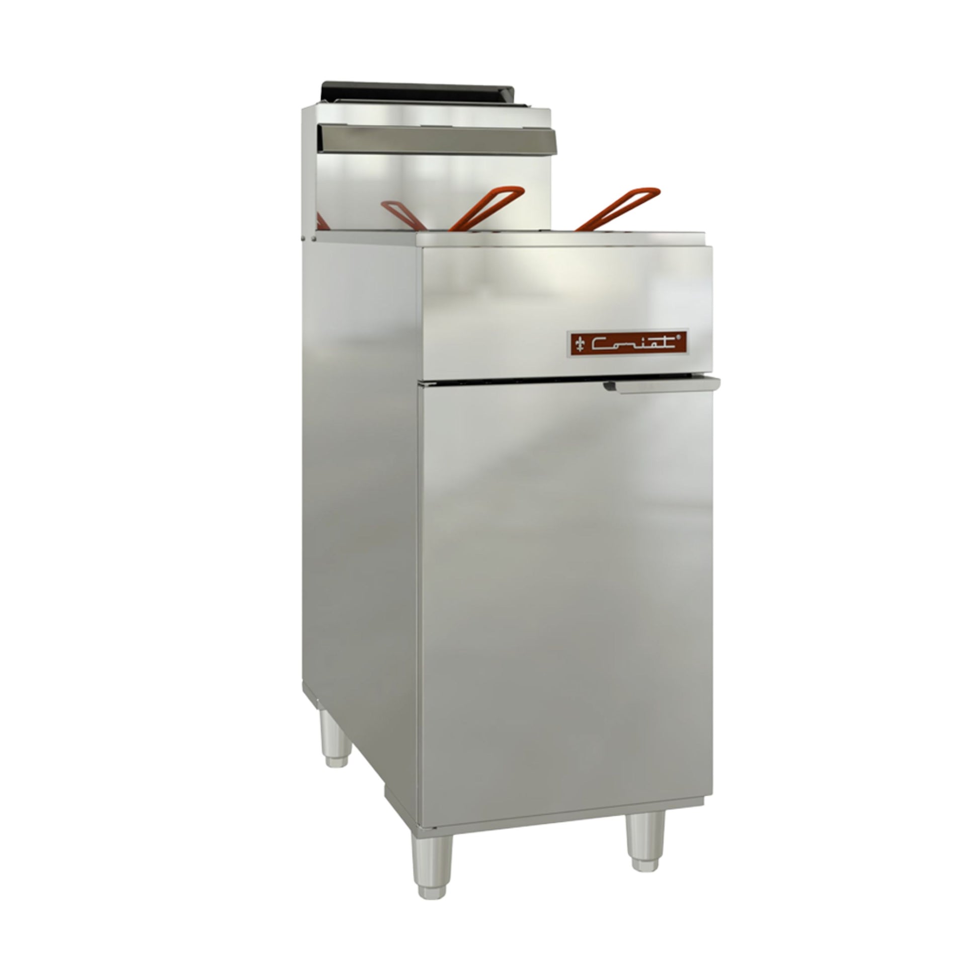EXTERIORES E INTERIORES FABRICADOS EN LÁMINA DE ACERO INOXIDABLE. 1 TINA A.INOX. 430 CALIBRE 16, CAP. DE 25.5 A 28.5 L DE ACEITE, MEDIDAS INTERIORES: FRENTE: 0.437 M, FONDO: 0.350 M, ALTURA: 0.210 M. 2 CANASTILLAS NIQUELADAS CON ASA PLASTIFICADA, MEDIDA INTERIOR DE C/U: FRENTE: 0.200 M, FONDO: 0.320 M, ALTURA: 0.140 M. 4 QUEMADORES RECUPERACIÓN INMEDIATA EN HIERRO FUNDIDO DE 23,000 BTU/H C/U. 1 PILOTO CONTINUO A.INOX., CERTIFICADO CSA USO COMERCIAL. 1 TERMOSTATO RX DE ACCIÓN INSTANTÁNEA, CON RANGO DE 100 A 204°C (212 A 400°F), CERTIFICADO CSA USO COMERCIAL. 1 VÁLVULA DE SEGURIDAD ELECTROMECÁNICA MILLIVOLT, CERTIFICADA CSA USO COMERCIAL. 1 CONTROL AUTOMÁTICO HIGH LIMIT DE PROTECCIÓN TÉRMICA, CALIBRADO A 232°C (450°F), CERTIFICADO CSA USO COMERCIAL. ZONA FRÍA AL FONDO QUE EXTIENDE VIDA ÚTIL DEL ACEITE. 1 PARRILLA SANITARIA DE ALAMBRÓN NIQUELADO. 1 VÁLVULA DE DRENADO DE 1.25" ?DE � PASO COMPLETO. 4 PATAS TUBULARES NIVELADORAS A.INOX. MEDIDAS EXTERIORES TOTALES, SIN EMPAQUE: FRENTE: 0.485 M, FONDO: 0.885 M, ALTURA: 1.180 - 1.220 M, ALTURA DE TRABAJO: 0.950 - 0.980 M. PESO SIN EMPAQUE: 80 KG. INCLUYE REGULADOR DE PRESION Y KIT DE ESPREAS PARA CONVERSIÓN DE GAS GLP A GN. CERTIFICACIÓN ANSI Z83.11-2016 • CSA 1.8-2016. CERTIFICACIÓN NSF/ANSI 4 - 2016.