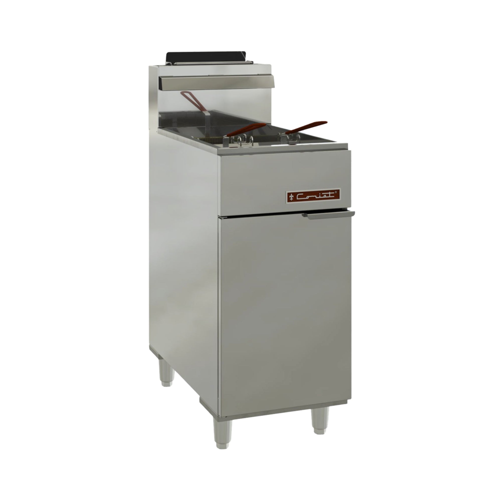 EXTERIORES E INTERIORES FABRICADOS EN LÁMINA DE ACERO INOXIDABLE. 1 TINA A.INOX. 430 CALIBRE 16, CAP. DE 30 A 33 L DE ACEITE, MEDIDAS INTERIORES: FRENTE: 0.517 M, FONDO: 0.350 M, ALTURA: 0.210 M. 2 CANASTILLAS NIQUELADAS CON ASA PLASTIFICADA, MEDIDA INTERIOR DE C/U: FRENTE: 0.240 M, FONDO: 0.320 M, ALTURA: 0.140 M. 5 QUEMADORES RECUPERACIÓN INMEDIATA EN HIERRO FUNDIDO DE 23,000 BTU/H C/U. 1 PILOTO CONTINUO A.INOX., CERTIFICADO CSA USO COMERCIAL. 1 TERMOSTATO RX DE ACCIÓN INSTANTÁNEA, CON RANGO DE 100 A 204°C (212 A 400°F), CERTIFICADO CSA USO COMERCIAL. 1 VÁLVULA DE SEGURIDAD ELECTROMECÁNICA MILLIVOLT, CERTIFICADA CSA USO COMERCIAL. 1 CONTROL AUTOMÁTICO HIGH LIMIT DE PROTECCIÓN TÉRMICA, CALIBRADO A 232°C (450°F), CERTIFICADO CSA USO COMERCIAL. ZONA FRÍA AL FONDO QUE EXTIENDE VIDA ÚTIL DEL ACEITE. 1 PARRILLA SANITARIA DE ALAMBRÓN NIQUELADO. 1 VÁLVULA DE DRENADO DE 1.25" ?DE � PASO COMPLETO. 4 PATAS TUBULARES NIVELADORAS A.INOX. MEDIDAS EXTERIORES TOTALES, SIN EMPAQUE: FRENTE: 0.565 M, FONDO: 0.885 M, ALTURA: 1.180 - 1.220 M, ALTURA DE TRABAJO: 0.950 - 0.980 M. PESO SIN EMPAQUE: 89 KG. INCLUYE REGULADOR DE PRESION Y KIT DE ESPREAS PARA CONVERSIÓN DE GAS GLP A GN. CERTIFICACIÓN ANSI Z83.11-2016 • CSA 1.8-2016. CERTIFICACIÓN NSF/ANSI 4 - 2016.
