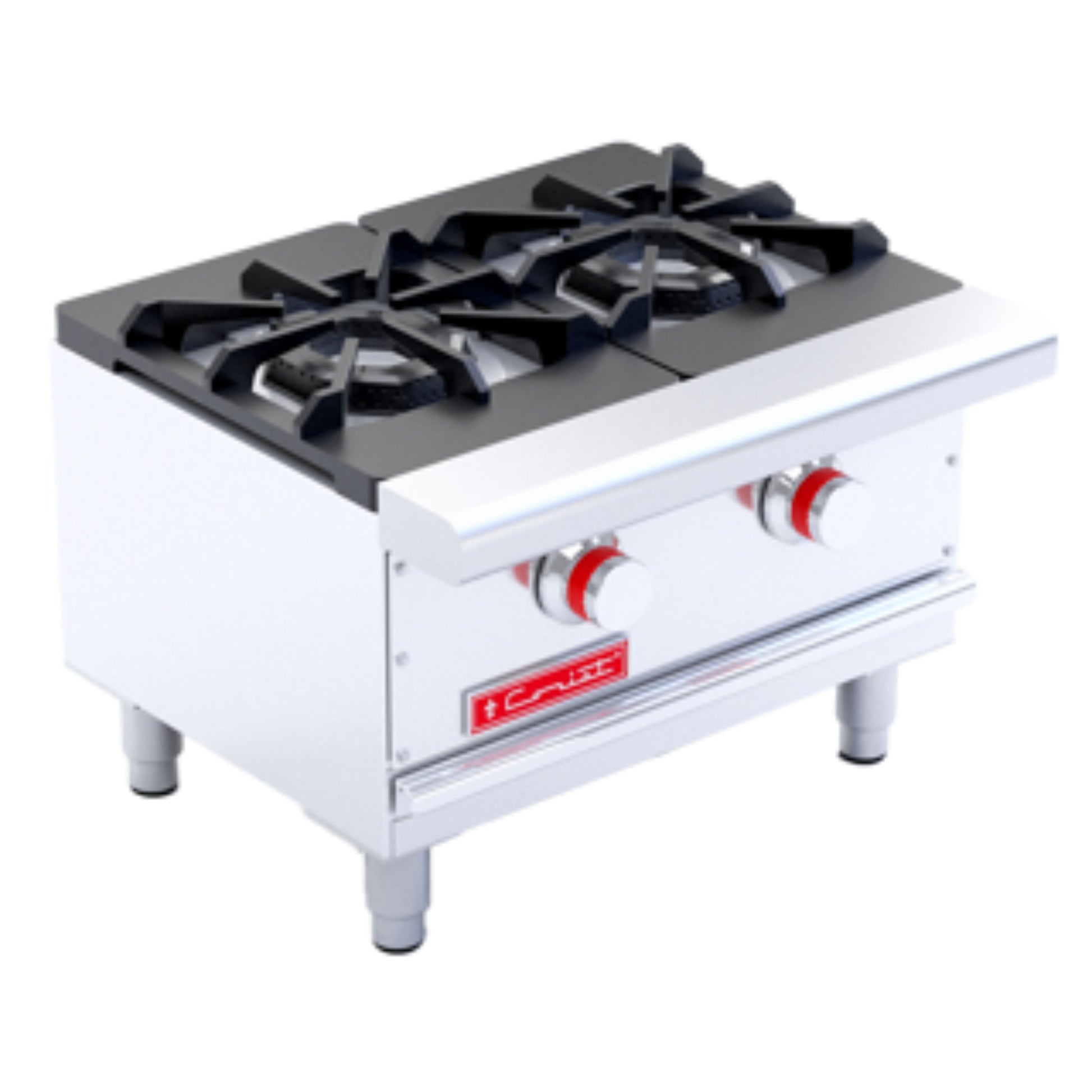 PARRILLA CORIAT® PCH-2 PETIT. EXTERIORES E INTERIORES EN LÁMINA DE ACERO INOXIDABLE. 2 QUEMADORES OCTAGONALES SÓLIDOS EN HIERRO FUNDIDO DE 24,000 BTU/HR C/U. 2 PARRILLAS SUPERIORES HIERRO FUNDIDO SOBRE CUBIERTA SEMI-SELLADA A.INOX. 304. 2 PILOTOS INDIVIDUALES A.INOX. CON CABEZA ROSCABLE TIPO HONGO. 2 VÁLVULAS DE AJUSTE FLAMA PILOTO IMPORTADAS, CERTIFICADAS CSA USO COMERCIAL. 2 VÁLVULAS DE GAS IMPORTADAS, CERTIFICADAS CSA USO COMERCIAL. 1 CHAROLA PARA CAPTAR ESCURRIMIENTOS. 2 PERILLAS ZINC CON AISLAMIENTO TÉRMICO EN SILICÓN ROJO. 4 PATAS TUBULARES NIVELADORAS A.INOX. MEDIDAS EXTERIORES SIN EMPAQUE: FRENTE 0.590 M, FONDO 0.590 M, ALTURA 0.430-0.480 M. PESO SIN EMPAQUE: 42 KG. INCLUYE REGULADOR DE PRESIÓN Y KIT DE ESPREAS PARA CONVERSIÓN DE GAS GLP A GN. CERTIFICACIÓN ANSI Z83.11-2016, CSA 1.8-2016. CERTIFICACIÓN NSF/ANSI 4-2016.