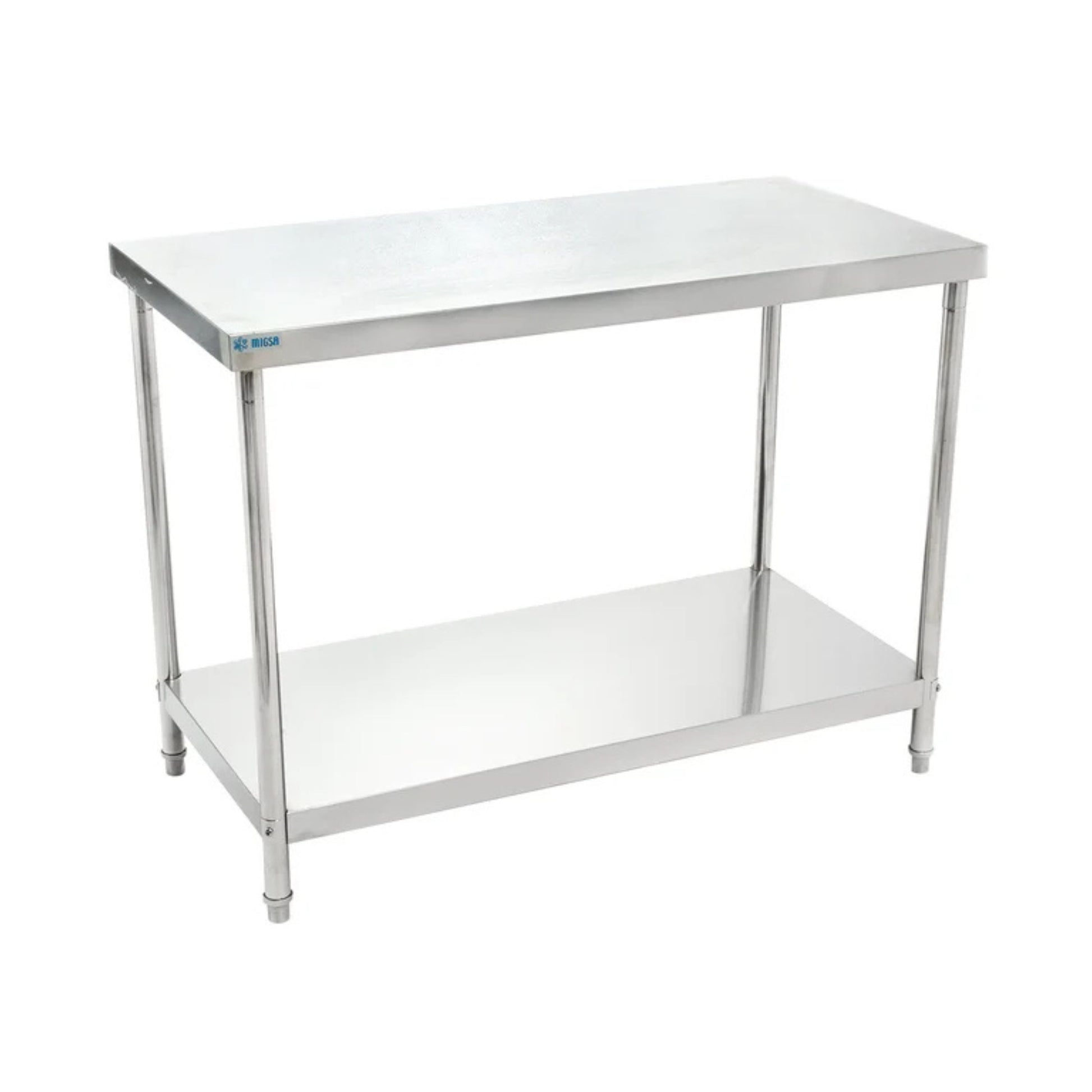 MARCA MIGSA. CUBIERTA, ENTREPAÑO Y ESTRUCTURA EN ACERO INOXIDABLE TIPO 201 DE 1 MM. SOPORTE INFERIOR DE LA CUBIERTA EN TERMOPLÁSTICO. (ENSAMBLABLE). MEDIDAS: 120 X 60 X 90 CM. CÓDIGO SAT/ 52152204